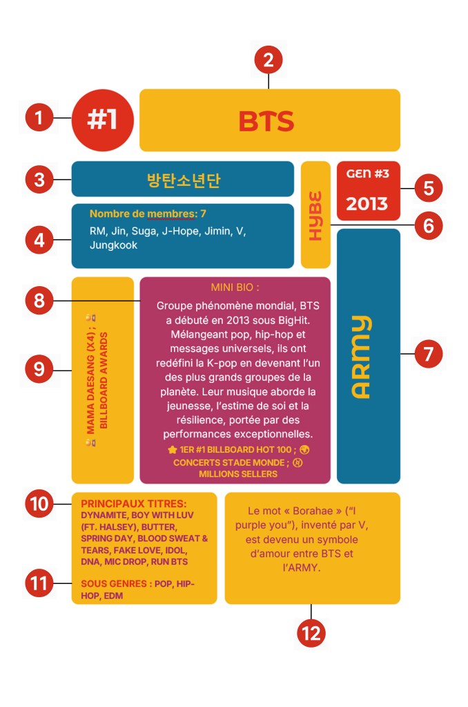 Un guide visuel chaleureux, accessible et unique — parfait pour (re)voir la K-Pop autrement.